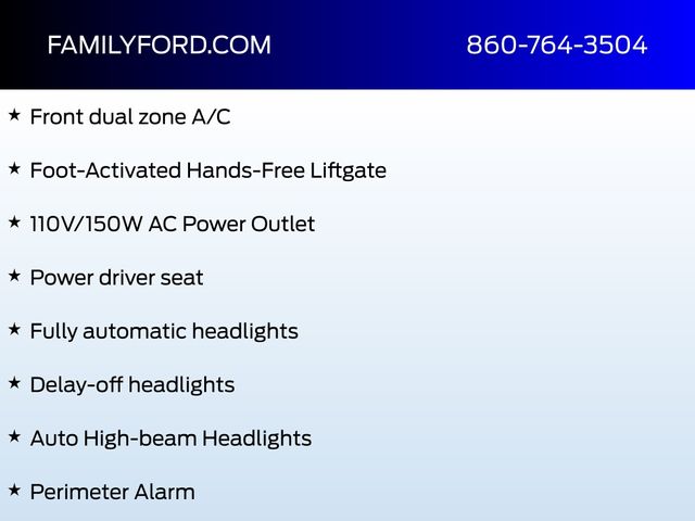 110V/150W AC Power Outlet, 3.80 Axle Ratio, ActiveX Seating Material Heated Bucket Seats, Air Conditioning, Alloy wheels, AM/FM radio: SiriusXM, Auto High-beam Headlights, Auto-dimming Rear-View mirror, Automatic temperature control, Cold Weather Package, Delay-off headlights, Foot-Activated Hands-Free Liftgate, Front & Rear Floor Liners, Front dual zone A/C, Fully automatic headlights, Heated door mirrors, Heated Steering Wheel, Illuminated entry, Panic alarm, Perimeter Alarm, Power door mirrors, Power driver seat, Power passenger seat, Premium 9 Speaker Audio System, Rain sensing wipers, Speed-Sensitive Wipers, Windshield Wiper De-Icer, Wireless Charging Pad.
