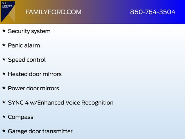 20" Polished Aluminum Wheels, ABS brakes, Adjustable pedals, Auto High-beam Headlights, Auto-dimming Rear-View mirror, Automatic temperature control, Class IV Trailer Hitch Receiver, Compass, Delay-off headlights, Electronic Stability Control, Exterior Parking Camera Rear, Front dual zone A/C, Fully automatic headlights, Garage door transmitter, Heated door mirrors, Heated front seats, Heated rear seats, Heated steering wheel, Illuminated entry, Integrated Trailer Brake Controller, Low tire pressure warning, Memory seat, Panic alarm, Pedal memory, Power door mirrors, Power driver seat, Power passenger seat, Radio: B&O Sound System by Bang & Olufsen, Rain sensing wipers, Remote keyless entry, Security system, Speed control, Speed-sensing steering, SYNC 4 w/Enhanced Voice Recognition, Traction control, Ventilated front seats.
