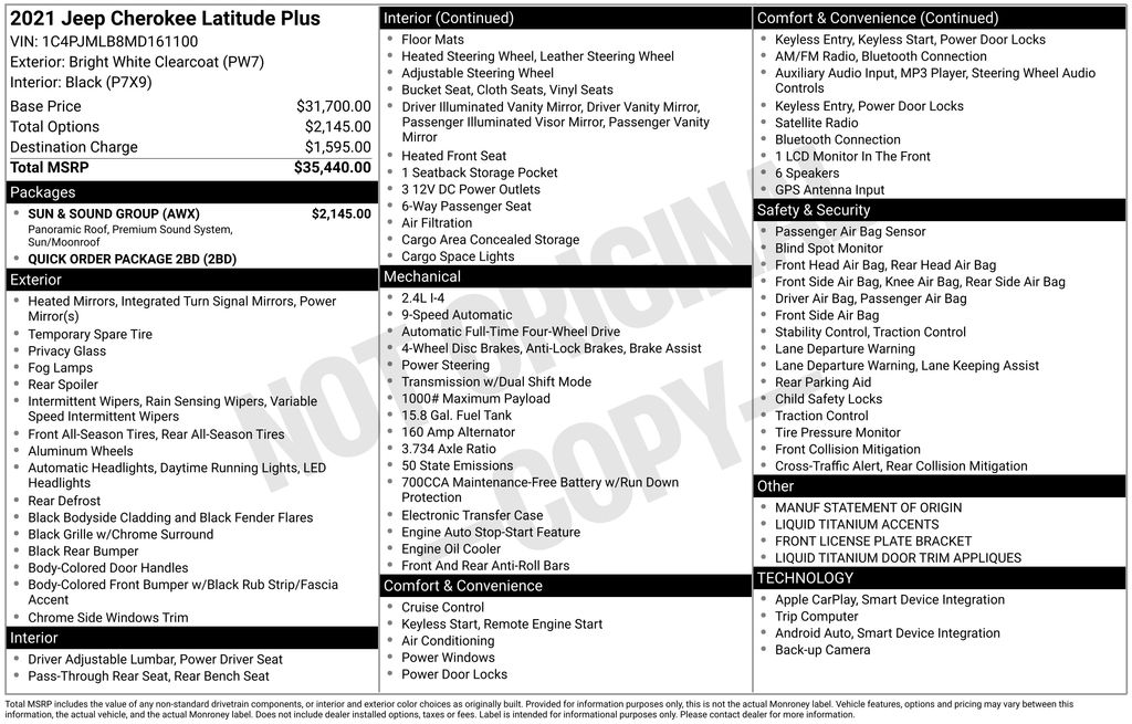 Tax, title, registration, destination, $595 dealer doc fee and acquisition fees not included in vehicle prices shown. Final purchase price dependent on additional accessories, sales purchase or aftermarket products, never based on credit. While great effort is made to ensure the accuracy of information on this site, errors do occur so please verify information with a customer service representative. See dealer for complete details.