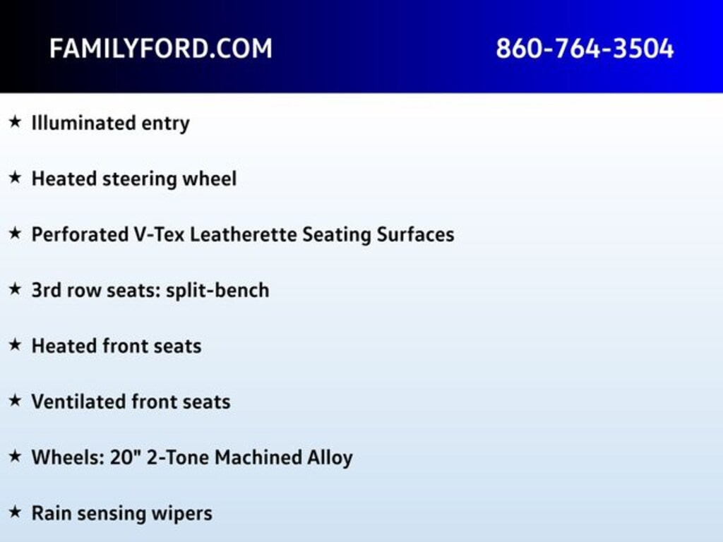 3.60 Axle Ratio, 3rd row seats: split-bench, AM/FM radio: SiriusXM with 360L, Delay-off headlights, Exterior Parking Camera Rear, Fully automatic headlights, Heated door mirrors, Heated front seats, Heated steering wheel, Heated/Actively Ventilated Front Bucket Seats, Illuminated entry, Panic alarm, Perforated V-Tex Leatherette Seating Surfaces, Power door mirrors, Power driver seat, Power Liftgate, Rain sensing wipers, Rear anti-roll bar, Remote keyless entry, Security system, Speed control, Steering wheel mounted audio controls, Turn signal indicator mirrors, Ventilated front seats, Wheels: 20" 2-Tone Machined Alloy.
