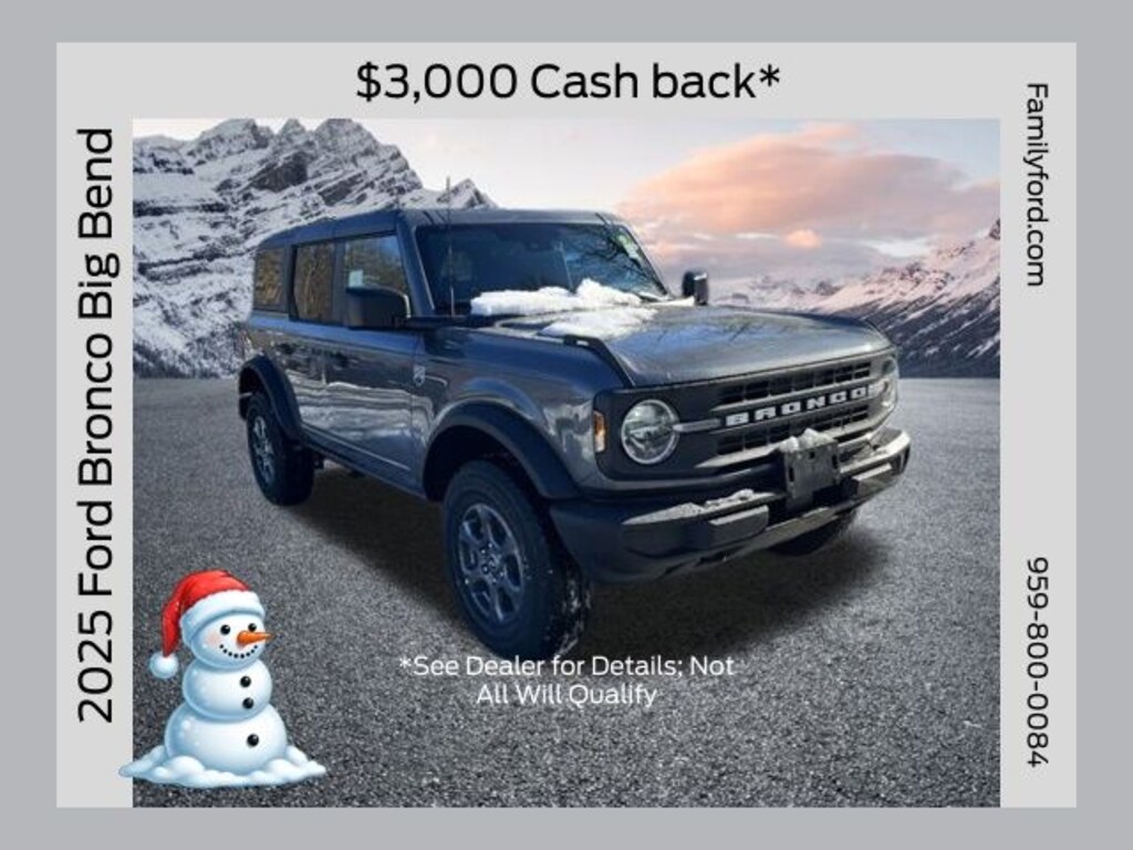 Adventure meets comfort in the 2025 Ford Bronco Big Bend. Built for off-road capability and everyday versatility, this rugged SUV offers advanced technology and premium features for an unforgettable driving experience.