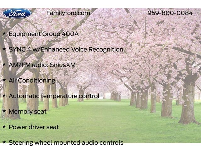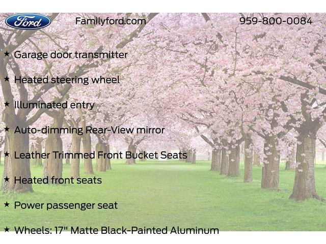 Air Conditioning, AM/FM radio: SiriusXM, Auto High-beam Headlights, Auto-dimming Rear-View mirror, Automatic temperature control, Delay-off headlights, Equipment Group 400A, Fully automatic headlights, Garage door transmitter, Heated door mirrors, Heated front seats, Heated steering wheel, Illuminated entry, Leather Trimmed Front Bucket Seats, Memory seat, Panic alarm, Power door mirrors, Power driver seat, Power passenger seat, Remote keyless entry, Security system, Speed-Sensitive Wipers, Steering wheel mounted audio controls, SYNC 4 w/Enhanced Voice Recognition, Wheels: 17" Matte Black-Painted Aluminum.