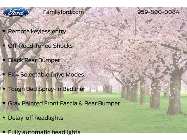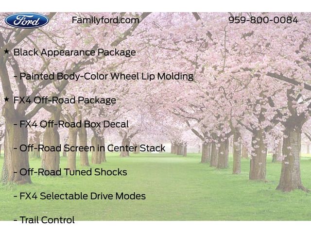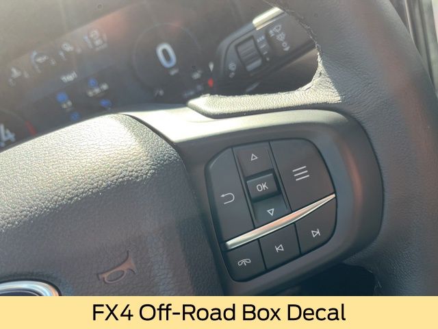 120V/400W In-Cab & In-Bed Power Outlets, Advanced Towing Package, Auto High-beam Headlights, Automatic temperature control, Black Appearance Package, Black Center Bar & Surround Grille, Black Rear Bumper, Body-Color Painted Front Fascia, Class IV Trailer Hitch Receiver, Convenience Package, Delay-off headlights, Electronic-Locking Rear Differential, Equipment Group 500A Standard, Front & Rear Black Ford Ovals, Front dual zone A/C, Fully automatic headlights, FX4 Off-Road Box Decal, FX4 Off-Road Package, FX4 Selectable Drive Modes, Garage door transmitter, Gray Painted Center Bar & Grille Surround, Gray Painted Front Fascia & Rear Bumper, Heated door mirrors, Heated front seats, Heated steering wheel, Illuminated entry, Memory seat, Off-Road Screen in Center Stack, Off-Road Tuned Shocks, Painted Body-Color Wheel Lip Molding, Panic alarm, Power door mirrors, Power driver seat, Power passenger seat, Pro Trailer Backup Assist, Radio: B&O Sound System by Bang & Olufsen, Rain sensing wipers, Rear Parking Sensors w/Trailer Guidance, Remote keyless entry, Security system, SiriusXM Satellite Radio, Speed control, Sport Appearance Package, Sport Box Decal, Steering wheel mounted audio controls, SYNC 4A w/Connected Navigation, Tough Bed Spray-In Bedliner, Trail Control, Trailer Brake Controller, Trailer Tow Package, Unique Carpet Mats, Wheels: 18" Black Painted, Wireless Charging Pad.