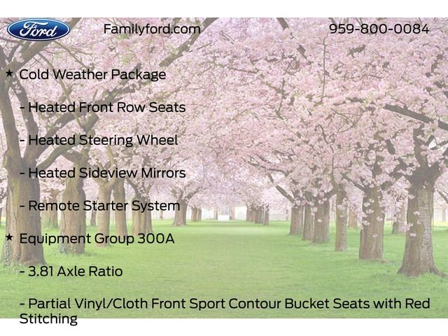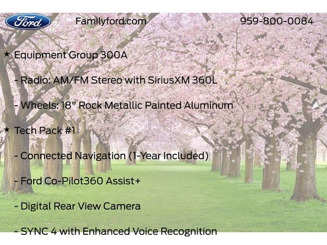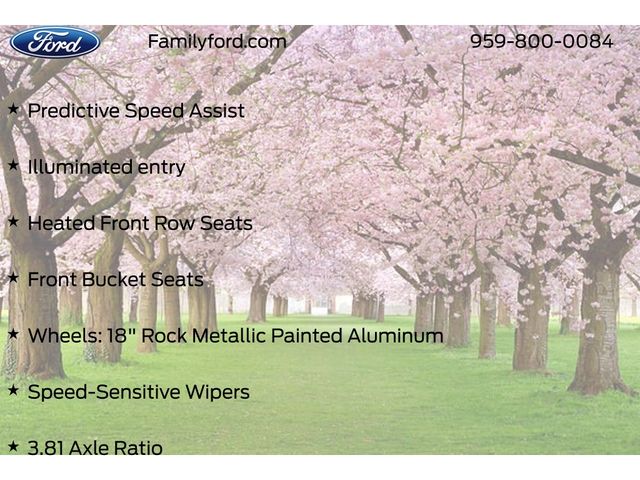 3.81 Axle Ratio, Adaptive Cruise Control w/Stop-and-Go, AM/FM radio: SiriusXM, Auto High-beam Headlights, Automatic temperature control, Cold Weather Package, Connected Navigation, Delay-off headlights, Equipment Group 300A, Ford Co-Pilot360 Assist+, Front Bucket Seats, Front dual zone A/C, Fully automatic headlights, Heated Front Row Seats, Heated Sideview Mirrors, Heated Steering Wheel, Illuminated entry, Intersection Assist, Panic alarm, Power door mirrors, Power driver seat, Power Liftgate, Predictive Speed Assist, Rear Parking Sensor, Rear-View Camera, Remote keyless entry, Remote Starter System, Speed-Sensitive Wipers, Steering wheel mounted audio controls, SYNC 4 w/Enhanced Voice Recognition, Tech Pack #1, Vinyl/Cloth Front Sport Contour Bucket Seats, Wheels: 18" Rock Metallic Painted Aluminum.