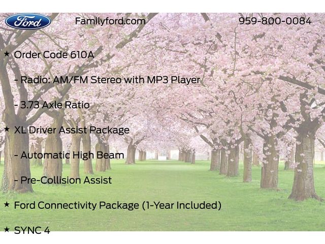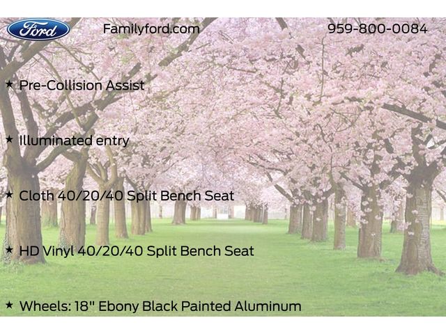 Inside, you'll find practical comfort with cloth or HD vinyl 40/20/40 split bench seating, color coordinated full carpet with floor mats, and intuitive controls. SYNC 4, the Ford Connectivity Package, and steering wheel mounted audio controls keep you connected and in control. Safety is supported by Pre Collision Assist, Automatic High Beam headlights, and a rearview camera.