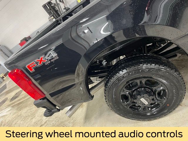 Equipped with the FX4 Off Road Package, this F350 adds off road tuned shock absorbers, Hill Descent Control, and a unique FX4 box decal for improved performance and style on rough terrain.