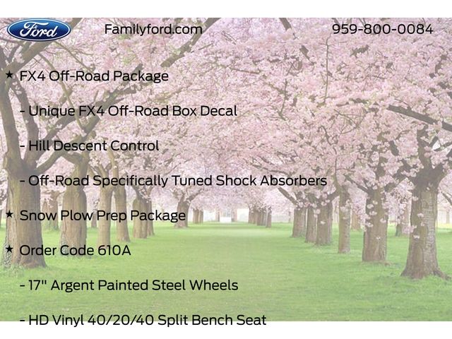 AM/FM Stereo w/MP3 Player, Automatic High Beam, Body-Color Front Bumper, Body-Color Rear Bumper, Cloth 40/20/40 Split Bench Seat, Color-Coordinated Full Carpet w/Floor Mats, Delay-off headlights, Exterior Parking Camera Rear, Ford Connectivity Package (1-Year Included), Fully automatic headlights, FX4 Off-Road Package, HD Vinyl 40/20/40 Split Bench Seat, Hill Descent Control, Illuminated entry, LED Fog Lamps, Off-Road Specifically Tuned Shock Absorbers, Order Code 610A, Painted Grille, Platform Running Boards, Power door mirrors, Power-Sliding Rear-Window w/Defrost, Pre-Collision Assist, Pro Power Onboard - 2kW, Remote keyless entry, Snow Plow Prep Package, Speed control, Steering wheel mounted audio controls, STX Appearance Package, SYNC 4, Unique FX4 Off-Road Box Decal, Wheels: 18" Ebony Black Painted Aluminum, XL Driver Assist Package.