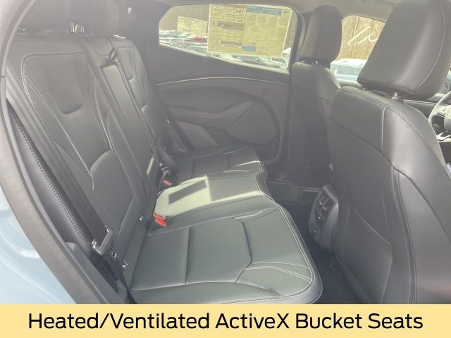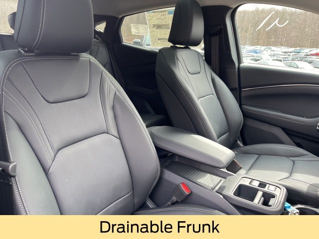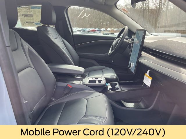 Inside, the MachE Premium surrounds you with comfort and high end materials. Heated and ventilated ActiveX bucket seats, a heated steering wheel, dual zone automatic climate control, and memory seating create a cabin that feels both modern and indulgent. The drainable frunk adds practical storage, while the mobile power cord and NACS fast charging adapter make charging flexible wherever you go.