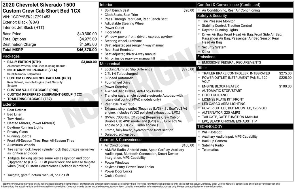 Used 2020 ChevroletSilverado 1500 Silverado Custom