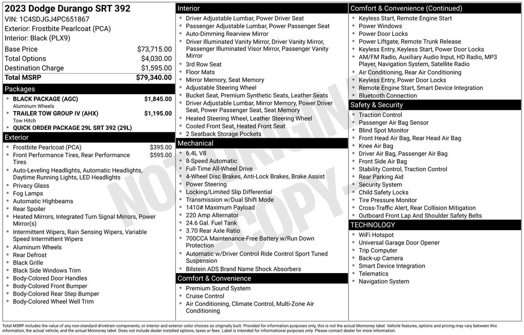 Had to get another vehicle after previous one was totaled by insurance. Searched exclusively on auto trader as they are the only website I have been able to find that has multiple search parameters. This Durango showed up with 5400 miles on the odometer. Virtually a drive train that is just broken in. It does have acoustic glass and very quiet. It has one of Stellantis most reliable engines with the 3.6, 3rd row seats, good sound system. Since it is a base model it doesn't have a lot of frills. No heated steering wheel, seats, blind spot, power rear lift hatch but it also does not make the bells, dings and whistle noises the other vehicle did. The previous vehicle (Acadia Denali) had so many options we turned half of them off. I could not drive into the garage without several sensors going off. Turned off auto steering, beeper for blind spot etc. Nice to have a vehicle that I don't have to turn things off just so I can drive it like a normal car.