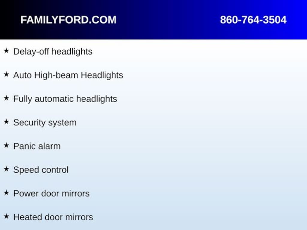 Safety and visibility are enhanced with auto highbeam headlights, fully automatic headlights, heated power mirrors, speedsensitive wipers, and SYNC 3 911 Assist for added peace of mind. Additional features like a panic alarm, security system, and rear antiroll bar contribute to stability and confidence on the road.