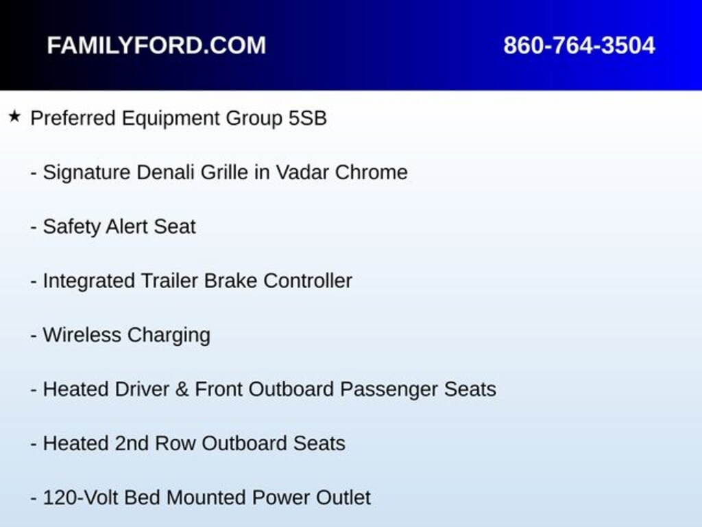 120-Volt Bed Mounted Power Outlet, 120-Volt Instrument Panel Power Outlet, 16-Way Power Driver Seat Adjuster w/Lumbar, 16-Way Power Passenger Seat Adjuster w/Lumbar, 2 Charge-Only Rear USB Ports, 2 Charge/Data USB Ports Inside Center Console, 2 USB Ports, 2-Speed Active Transfer Case, 3.42 Axle Ratio, AM/FM radio: SiriusXM with 360L, Apple CarPlay/Android Auto, Auto High-beam Headlights, Automatic Emergency Braking, Bed View Camera w/2 Trailer Camera Provisions, Block heater, Bose Premium Series 12-Speaker System, Deep-Tinted Glass, Delay-off headlights, Dual Heavy-Duty 70 Amp Battery, Electric Rear-Window Defogger, Floor-Mounted Center Console, Following Distance Indicator, Forward Collision Alert, Front fog lights, Front Pedestrian Braking, Front Rain-Sensing Wipers, Fully automatic headlights, Garage door transmitter, GMC Connected Access Capable, HD Surround Vision, Heated 2nd Row Outboard Seats, Heated door mirrors, Heated Driver & Front Outboard Passenger Seats, Heated front seats, Heated rear seats, Heated steering wheel, Hill Descent Control, Hitch Guidance w/Hitch View, In-Vehicle Trailering System App, Inside Rearview Auto-Dimming Rear Camera Mirror, Integrated Trailer Brake Controller, IntelliBeam Automatic High Beam On/Off, Keyless Open & Start, LED Cargo Area Lighting, LED Smoked Amber Roof Marker Lamps, Manual Tilt-Wheel/Telescoping Steering Column, Multicolor 15" Diagonal Head-Up Display, OnStar & GMC Connected Services Capable, Power Front Passenger Windows w/Express Up/Down, Power Sliding Rear Window w/Defogger, Power Sunroof, Preferred Equipment Group 5SB, Push Button Start, Rain sensing wipers, Rear Cross Traffic Alert, Rear Wheelhouse Liners, Remote Vehicle Starter System, Safety Alert Seat, Signature Denali Grille in Vadar Chrome, SiriusXM w/360L, Spray-On Bedliner w/Denali Logo, Steering Wheel Audio Controls, Technology Package, Trailer Cam Provisions & Trailer Viewing Software, Trailer Side Blind Zone Alert, Trailer Tire Pressure Monitor Sensors, Ultrasonic Front & Rear Park Assist, Unauthorized Entry Theft-Deterrent System, Universal Home Remote, Ventilated Driver & Front Passenger Seats, Ventilated front seats, Wheels: 20" Ultra-Bright Machined Aluminum, Wireless Charging, Wireless Phone Projection, X31 Off-Road Package.