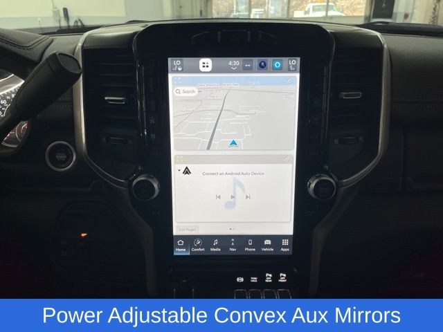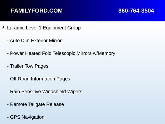 This Laramie is equipped for serious work and towing with its Off Road Information Pages, Trailer Tow Pages, selectable tire fill alert, forward and reverse utility lighting, and a suite of visibility enhancing mirror features, including auto folding, heated, power telescoping tow mirrors with memory and integrated signals. Safety and confidence come through blind spot and cross path detection, Park Sense front and rear parking assist, Park View rear backup camera, rain sensing wipers, LED reflector headlamps, LED fog lamps, and LED tail lamps that provide excellent visibility in all conditions.